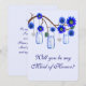 O dia perfeito de todas as noivas inclui suas amigas. Quem você confia para dar um discurso e realizar tarefas como ajudá-la a escolher os vestidos das damas de honra para que o plano do seu casamento ocorra sem problemas? Seja sua irmã responsável, prima, sobrinha ou melhor amiga, este convite "Você será minha Dama de Honra" é uma maneira divertida de perguntar. Personalize o cartão alterando o texto nos campos fornecidos. Você pode alterar o estilo, tamanho e cor da fonte, tipo e estilo de papel, bem como a cor do fundo.