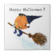 Vassoura-voadora de bruxa-de-abóbora-Azulejo cerâm