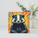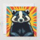 Cartão bonito com um texugo de pop de arte nele em um desenho de pop de arte no estilo de quadrinhos e o verso é vazio.