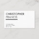 Uma parte traseira do quando meu irmão possuiu uma empresa do terno nomeada Christopher Francis que fez ternos da parte alta. Cada um foi personalizado ao poço das necessidades da pessoa, o elegante e o apto. Eu tentei fazer estes cartões com aquele a apelação simples, moderna que aqueles ternos de negócio tiveram. Estes cartões crafted com cuidado para apresentar um estilo profissional, moderno, lustroso para seu negócio. Projetou ser fácil de ler, personalizam estes cartões para caber suas necessidades. Adicione seu texto do logotipo e do costume para acentuar o fundo. Indique seu profissionalismo através destes cartões de visitas elegantes. O design simples faz estes cartões perfeitos para muitas profissões que incluem advogados, mediadores imobiliários, artistas de composição, masseurs e empresários. O tipo claro e os acentos simples fazem os cartões estar para fora e fácil de ler.