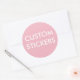 Personalizado impresso personalizado 6 GLOSSY TERMINA GRANDE Modelo ROUND / CIRCULAR / CIRCULAR DE 3" (EXEMPLO DE IMPRESSÃO DE FUNDO DE PINK) (também disponível no acabamento de Matte). Design, crie, faça o seu. Sua foto, imagem, texto no impressão de cheio de cheio sangrando de de borda a borda na frente do adesivo. 6 adesivos por folha. Impresso em papel branco sem ácido, com frente resistente a arranhões e com uma pega e pau fáceis. Melhor para o abate de veículos, atividades infantis, projetos de artesanatos e de viagens de aniversário e de Natal / cartões / envelopes.