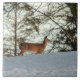 Luz agradável em um cervo em pé no topo de uma colina nevada.