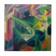 Veados em um Jardim de um Mosteiro (1912) por Franz Marc é uma pintura de arte cubista antiga que apresenta uma corça em um jardim atrás do Mosteiro. Uma família de cervos está descansando enquanto pássaros voam através das árvores. Formas abstratas e cores bonitas.