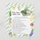 "O bebê crescido localmente está a caminho". Celebrar com esta festa de chá de fraldas temático de legumes de aquarela! pepino aquoso, cebola, beringela, abobrinha, tomate amarelo e vermelho, rabanetes, cenouras, pimenta quente, pimenta amarela doce, ervilhas e repolho, brócolis e beterraba num conselho de corte. Colheita orgânica por aquarelas.