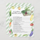 "O bebê crescido localmente está a caminho". Celebrar com esta festa de chá de fraldas temático de legumes de aquarela! pepino aquoso, cebola, beringela, abobrinha, tomate amarelo e vermelho, rabanetes, cenouras, pimenta quente, pimenta amarela doce, ervilhas e repolho, brócolis e beterraba num conselho de corte. Colheita orgânica por aquarelas.