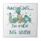 Veggies Engraçados Novas t-shirts, camisas-chave, correntes-chave, botões, bolsas, canecas, autocolantes, cartões e outras peças irmãs grandes, com olhos e texto que se lê "Anounching...I é uma NOVA IRMÃ!!".