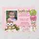 Esse adorável convite de aniversário de coruja em tons de rosa, marrom e verde é perfeito para seu amante de coruja. (Se você precisar inserir texto adicional OU alterar o tamanho/orientação/posicionamento do texto OU mesmo alterar o tipo de fonte ou a cor da fonte, clique no botão "Personalizar" logo abaixo da imagem do produto e, em seguida, as opções de menu adicionais serão exibidas.)