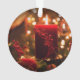 Cena lindo com uma vela iluminada no primeiro plano e uma cena do Natal no fundo. Colorido e clássico. Isto fará a uma adição bonita a qualquer um a árvore esta estação do Natal! Aprecie!