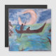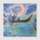 Junte-se à magia e mistério da navegação à lua com esta linda aquarela. Pintados em cores macios e pastéis, os dois viajantes intrépitos velejam em direção a um futuro mais calmo contra o fundo do céu noturno e uma enorme lua crescente. O verde, azul, marrom e prata se combinam para criar uma fotografia quente e bonita que iluminará qualquer lugar.