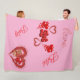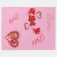 Um cobertor cor-de-rosa macio com vários designs cardíacos, as palavras "amor", "Bébé" e "Bebê", e uma encantadora ilustração de um ursinho de pelúcia aninhado dentro de um grande coração feito de rosas.