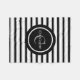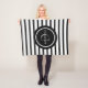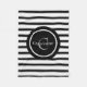O cobertor de bebês do Black White Striped Customized Boy's faz uma ideia de presente de excelente! Design de corte com faixas pretas e brancas em pequeno cobertor branco de velo mole Círculo preto centrado em monograma e sobrenome PERSONALIZADO COM NOME E MONOGRAMA INICIAL SIMPLESMENTE SEGUINDO O PROMPT DO MODELO ZAZZLE