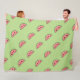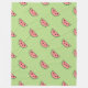 Cobertor de fleece com padrão de fatias de melancia fofas em um fundo verde.