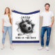 Um cobertor de futebol criativo com design de bola de futebol em alta velocidade. Para personalizar, edite texto para adicionar nome. Altere a cor azul do plano de fundo para a cor do grupo com um simples clique.