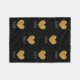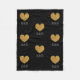 Um monograma personalizado de cobertor de padrão cardíaco de brilho dourado. Símbolo de amor preto e ouro 3 letras monograma cobertor de velo mole. Cor de fundo personalizável. Padrão glamouroso com letras de tipografia na moda para suas iniciais de nome. Decoração caseira monogramada para quarto elegante, dormitório, cama, sofá ou sofá. Cobrir inicializado. Adequado para homens, mulheres e crianças. Faça o seu para amigos e família. Clássica ideia de presente de casamento para noiva e casal de noivos recém-casados. Coração de ouro com brilhos falsos e vislumbres brilhantes.