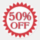 Venda 50% de adesivos em círculo vermelho
