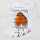 Um tema tradicional de inverno e Natal. Um lindo Robin vindo a um jardim, quintal para as sementes de girassol na neve. Cor branca de fundo (neve) da natureza: laranja, castanho e branco. Modelos para os detalhes da sua festa. 1 folha = 1 convite impresso de borda a borda.