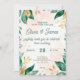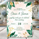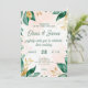 Convite de casamento elegante com folhas de cor verde-d'água com sotaque de ouro em fundo rosa-pinto-claro. Um design botânico eterno perfeito para casamentos românticos, jardins ou modernos. Crie uma bela impressão e dê o tom para seu dia especial com este modelo floral na moda.