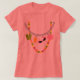 Uma camisa temático do verão t que caracteriza um trompe - l ' ilustração do oeil de uma colar do encanto com corrente de prata e de uma corda da miçanga alaranjada, amarela, cor-de-rosa, e verde. A colar tem chinelos verdes, o pop alaranjado do gelo, óculos de sol cor-de-rosa, e encantos cor-de-rosa do dólar de areia.