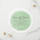 Tendy and na moda Watercolor Salve o Anúncio de Data com um círculo com uma cor d'água escoada e olhe para o plano de fundo verde. Esta elegante e moderna salvação do convite de data é fácil de personalizar com seus detalhes de casamento. Para obter mais opções de personalização, clique no botão Personalizar Ti.