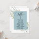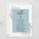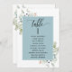 Ajude seus convidados a encontrar sua mesa com os cartões elegantes de lugares verdes com nomes de convidados. Quadro com nomes de hóspedes em azul-nebuloso e detalhes delicados de cor-de-água verde. Cartões duplos para que os hóspedes possam procurar os dois, frente ou verso pelos seus nomes. Espaço livre ao redor, dando-lhe a liberdade de usar clipes ou furos de perfuração para monitores suspensos, ou usar o suporte/quadro da mesa. Detalhes da caligrafia escrita à mão. Verde em uma bela mistura de tons verdes, azuis, beige bronzeados e terracota. Também disponível com quadro em branco, em bege e verde. Ter todos os números de tabela na mesma cor ou cores misturadas de acordo com o tema de cor do evento. Parte da nossa coleção "Elegante Verde Eucalyptus Wedding and Events" com uma variedade de produtos coordenadores disponíveis.
