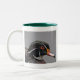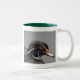 Pato de madeira americano masculino em uma caneca do Dois-Tom