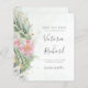 Belo orçamento Salve o cartão de data com branco cor-de-rosa-d-água floral eucalipto e folhas de ouro.
