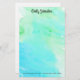 O papel de carta colorido feito em um verde e a lavagem da aguarela de turquesa olham. Personalize o texto, na parte superior e na parte inferior, para ler o que você quer. Artigos de papelaria do divertimento para o senhor mesmo ou como uma ideia pequena agradável do presente a ela.