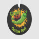 Pimenta verde com mensagem ambiental sobre o círculo da chama. Cor de fundo personalizada. Texto personalizado de ambos os lados.