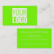 Cartão de visita em fundo verde fluorescente de cor sólida e um logotipo de cobrir. Personalize ambos os lados agora. Design moderno e moderno por Alma Wad. Ele vem 100 em um pacote.