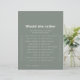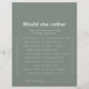 Este jogo formal de preferencialmente seria perfeito para uma celebração clássica de chá de panela. O design apresenta uma bela fonte em um fundo verde para embelezar seu evento.