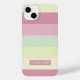 Lindo padrão de listras cor-de-rosa claro-limão, verde de maçã pastel e leve e doce de framboesa vermelha. Com espaço para personalizar ou personalizar com um nome, monograma ou iniciais de sua escolha. design hipster ornamentado, divertida, moderna e caprichosa para a elegante moda artística ou diva de moda artística, moto de quadril, estilo de arte retrô vintage ou amante geométrico que quer proteger seu telefone do pó e da sujeira, visto e lágrimas. Este design está disponível no Apple iPhone 6, 7 e 8 Plus, 10 ou X, XR, XS, 11, 12, 13 Mini, 14, 15 Plus e no Pro Max Celphone capas. Mostre seu estilo, olhe a moda da moda e sinta na moda com um design único em um acessório de dispositivo móvel de sua escolha.