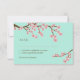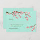 Lindas flores de cerejeira rosa e passarinhos fofos em um fundo verde menta adornam este simples conjunto de convite de casamento moderno. Este design é perfeito para casamentos com tema asiático em jardins.