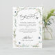 Comunique a família e os amigos as grandes notícias do seu casamento com este elegante Cartão de Anúncio "Nós nos Casamos". Sinta-se à vontade para adicionar sua própria mensagem, a nossa é apenas um exemplo. Design com detalhes de caligrafia moderna manuscrita e exuberante folhagem em tons de sage, verde, azul e cobre ao redor dos seus detalhes. Verso do cartão com delicados detalhes de folhagem floral nos cantos e logotipo decorativo elegante com os nomes completos da noiva e do noivo no centro.