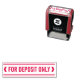 Este design de selo de borracha, de captura ocular, contém a mensagem "FOR DEPOSIT only" (APENAS PARA DEPÓSITO). Talvez possa ser usado por um proprietário de uma pequena empresa, um funcionário de escritório ou um funcionário de escritório para rapidamente acrescentar um endosso restritivo a um cheque.