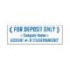 Este elegante design de carimbo apresenta a mensagem "SOMENTE PARA DEPÓSITO", além de um nome pessoal/profissional personalizado e número de conta. Pode ser usado por um funcionário financeiro ou um funcionário do escritório para facilmente adicionar um despejo restritivo a um cheque.