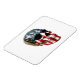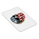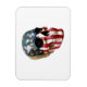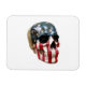 Crânio realista pintado de vermelho branco e azul em um ímã de geladeira