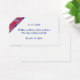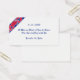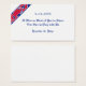 Este cartão de favor de casamento é decorado com bares vermelho, branco e azul, úmidos num fundo branco.
