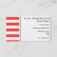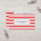 Um design chique que caracteriza listras brancas e vermelhas horizontais com uma caixa branca no centro para seus nome e profissão.