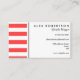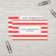 Um design chique que caracteriza listras brancas e vermelhas horizontais com uma caixa branca no centro para seus nome e profissão.