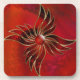 Um abstrato funciona em vermelho e ouro ferozes. Uma joia vermelha clara é rodeada por chamas douradas, acentuadas com ruídos espumantes e estribos amarelos. Os fractais espiraláveis e giratórios no fundo aparecem em cores mais profundas dentro do filigre dourado do motivo da chama.