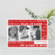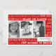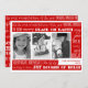 Com um fundo vermelho festivo e decorado com as pequenas notícias das palavras das canções de natal amados do Natal, este cartão da foto do feriado comemora perfeitamente a estação! Três quadros da foto guardaram suas fotos de família maravilhosas. Na parte traseira, o a tipografia lírica da canção faz um fundo modelado festivo.