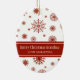 Ornamento da avó do Feliz Natal customizável com sua própria foto de família no teste padrão vermelho e branco elegante dos flocos de neve. Um presente à moda do Natal para a avó esta época natalícia.