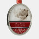 O Feliz Natal avó e vovô ornament customizável com sua própria foto de família no vermelho elegante, cor damasco floral clássica preto e branco. Um presente à moda do Natal para o vovô e a avó esta época natalícia.