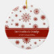 O Feliz Natal avó e vovô ornament customizável com sua própria foto de família no teste padrão vermelho e branco elegante dos flocos de neve. Um presente à moda do Natal para a avó e o vovô esta época natalícia.