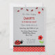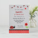 Convite do aniversário com tema do joaninha e combinação de cor preto-vermelha.