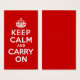 Versão moderna de "Manter Calmo e Continuar" vermelha e branca do poster clássico.