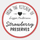 Um círculo vermelho de morango e design cardíaco é simples e fofo, e com tipografia caprichosa e divertida, ele faz um belo rótulo para suas receitas caseiras. Perfeito para doces, geleias e pães.