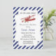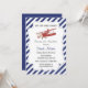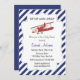 Convite do chá de fraldas com design do plano do vintage e fundo das listras azuis.