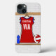 Um design único para o jogador de netball ou fã de netball com um uniforme de netball pendurado em uma sala de mudanças esportivas em vermelho com trim azul e branco. O nome e a posição do netball podem ser personalizados para o netball. Uma garrafa de netball e água está ao lado do uniforme do netball. Este design personalizado pode ser criado em qualquer combinação de cores para a estrela netball em sua família. Contacte-nos através da loja GiftsBonanaza com os seus pedidos.