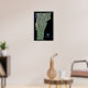 O estado de Vermont do espaço é representado neste brilhante mapa/impressão de satélite. Os dados para esta foto de satélite foram melhorados topograficamente para trazer características do terreno. Além disso, este mapa de satélite tem linhas de condados (sem nomes), nomes de algumas grandes áreas metropolitanas e a bandeira do Estado.